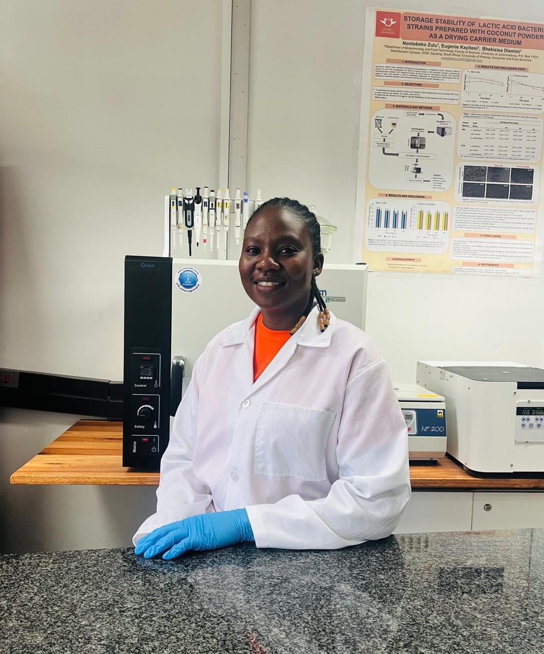 Lungani’s research is titled “Efficacy of fermentation and other complementary approaches on overall food product quality and reduction of mycotoxin concentrations in selected food products”. It focuses on optimising the fermentation processes of traditional sorghum and maize-based foods from Africa, specifically umqombothi and akpan, and improving their safety and nutritional value.
